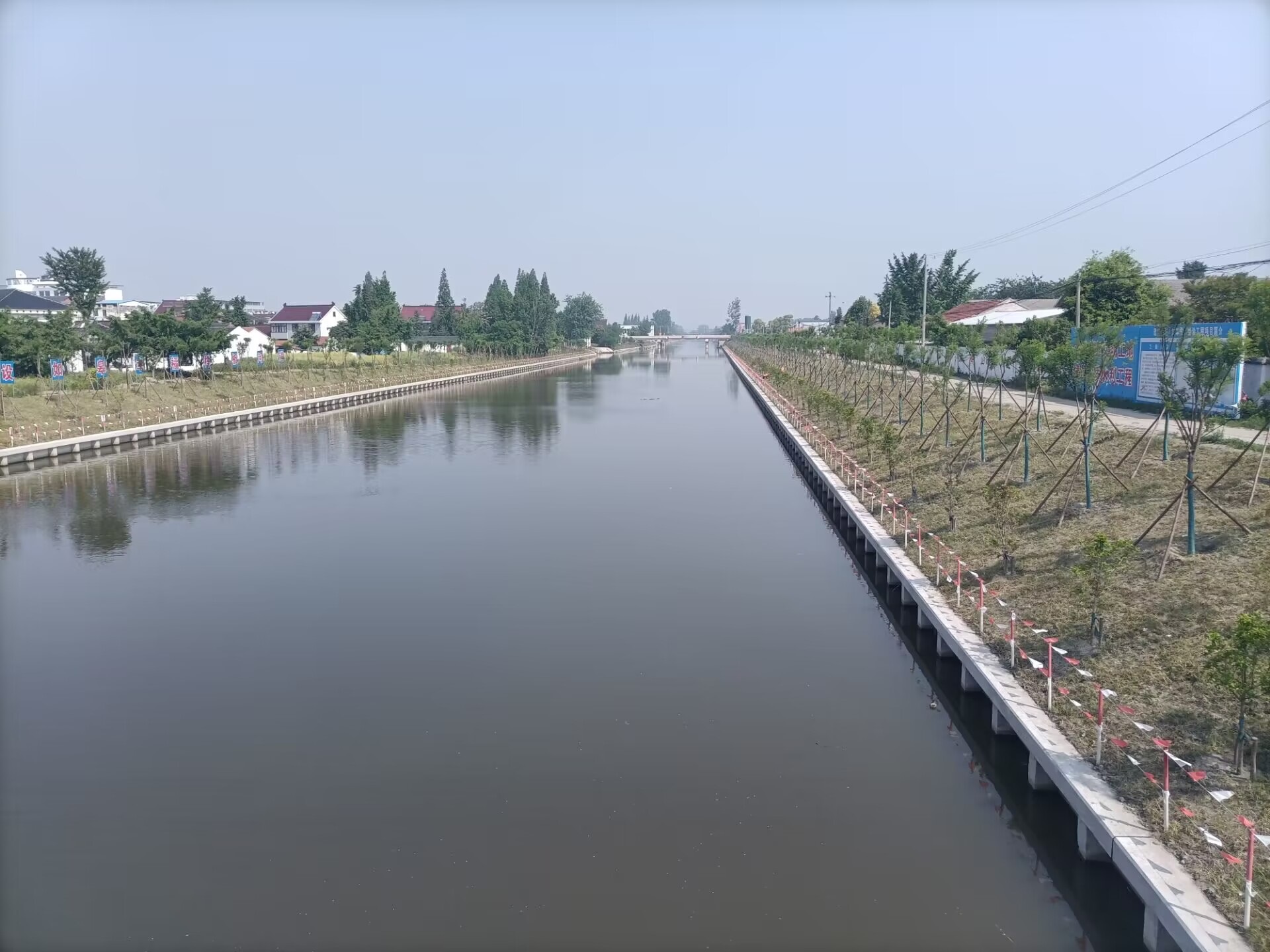 通揚(yáng)運(yùn)河整治后現(xiàn)場(chǎng)實(shí)拍圖,護(hù)岸采用插板樁