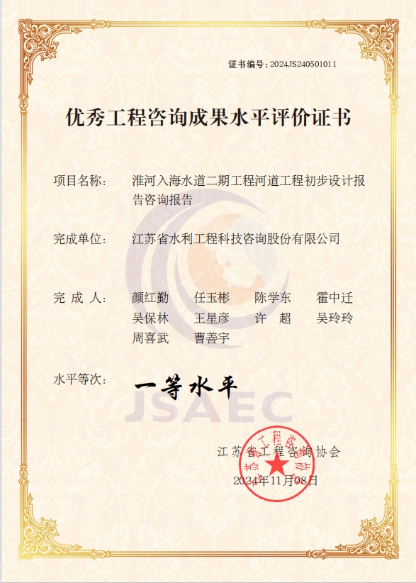 近日,2024年度江蘇省優(yōu)秀工程咨詢成果水平評選結果揭曉,我公司六個項目均榜上有名;春尤牒K蓝诠こ毯拥拦こ坛醪皆O計報告咨詢報告評為一等水平,蘇南運河“三改二”工程通航特征水位論證研究評為二等水平,其余四個項目評為三等水平。