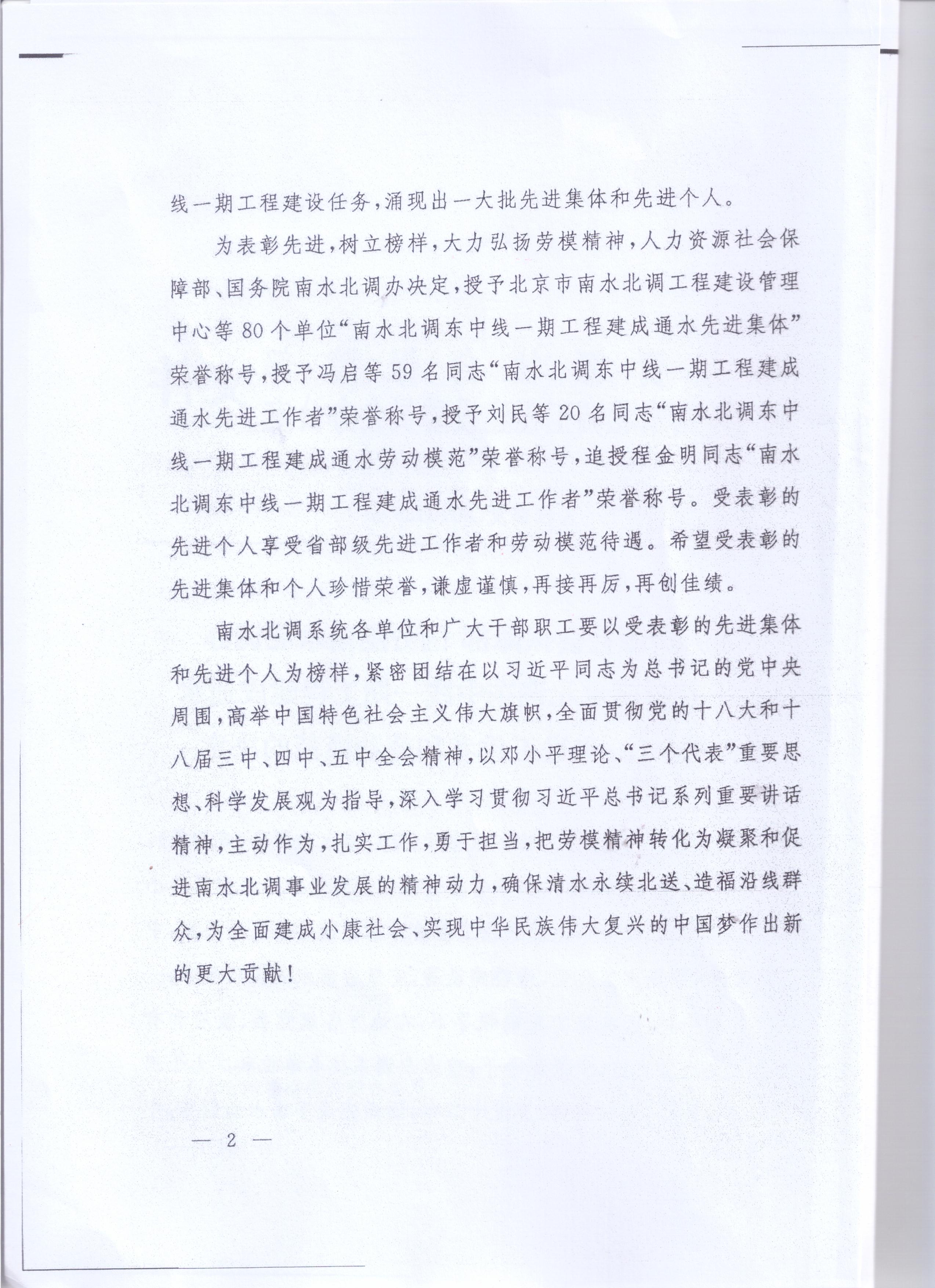 > 南水北調(diào)東中線一期工程先進(jìn)集體