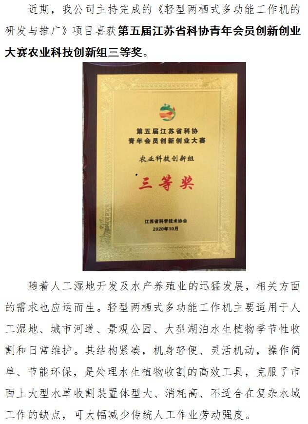 公司喜獲第五屆江蘇省科協(xié)青年會員創(chuàng)新創(chuàng)業(yè)大賽農(nóng)業(yè)科技創(chuàng)新組三等獎