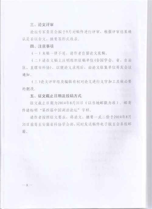 > 中國科協(xié)辦公廳關(guān)于舉辦第四屆中國湖泊論壇的預(yù)備通知
