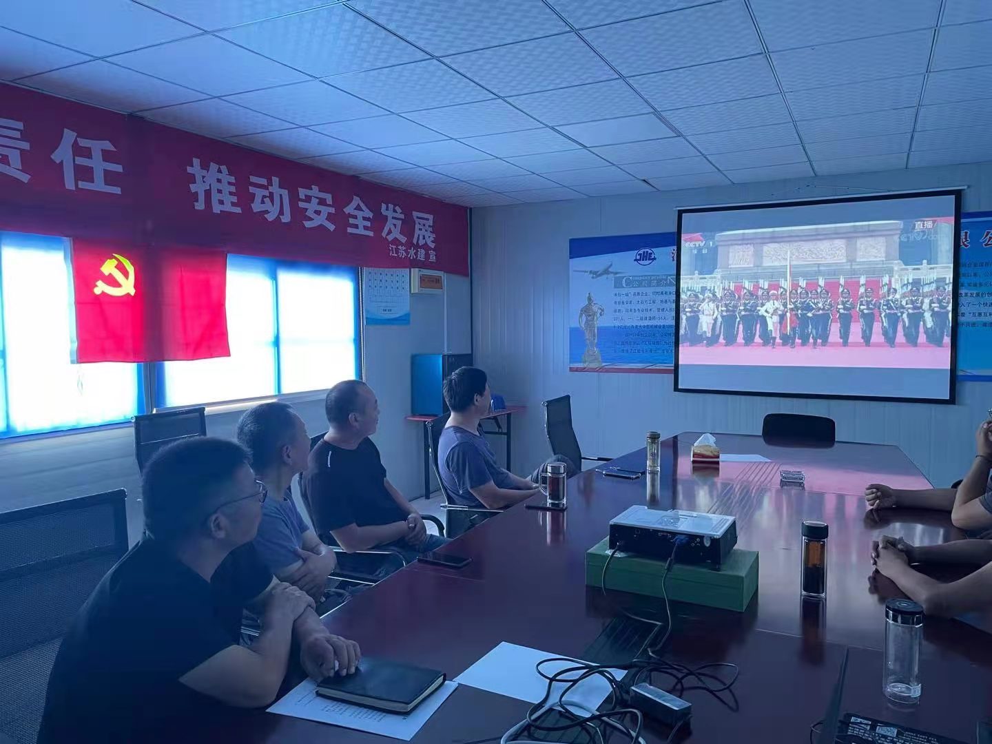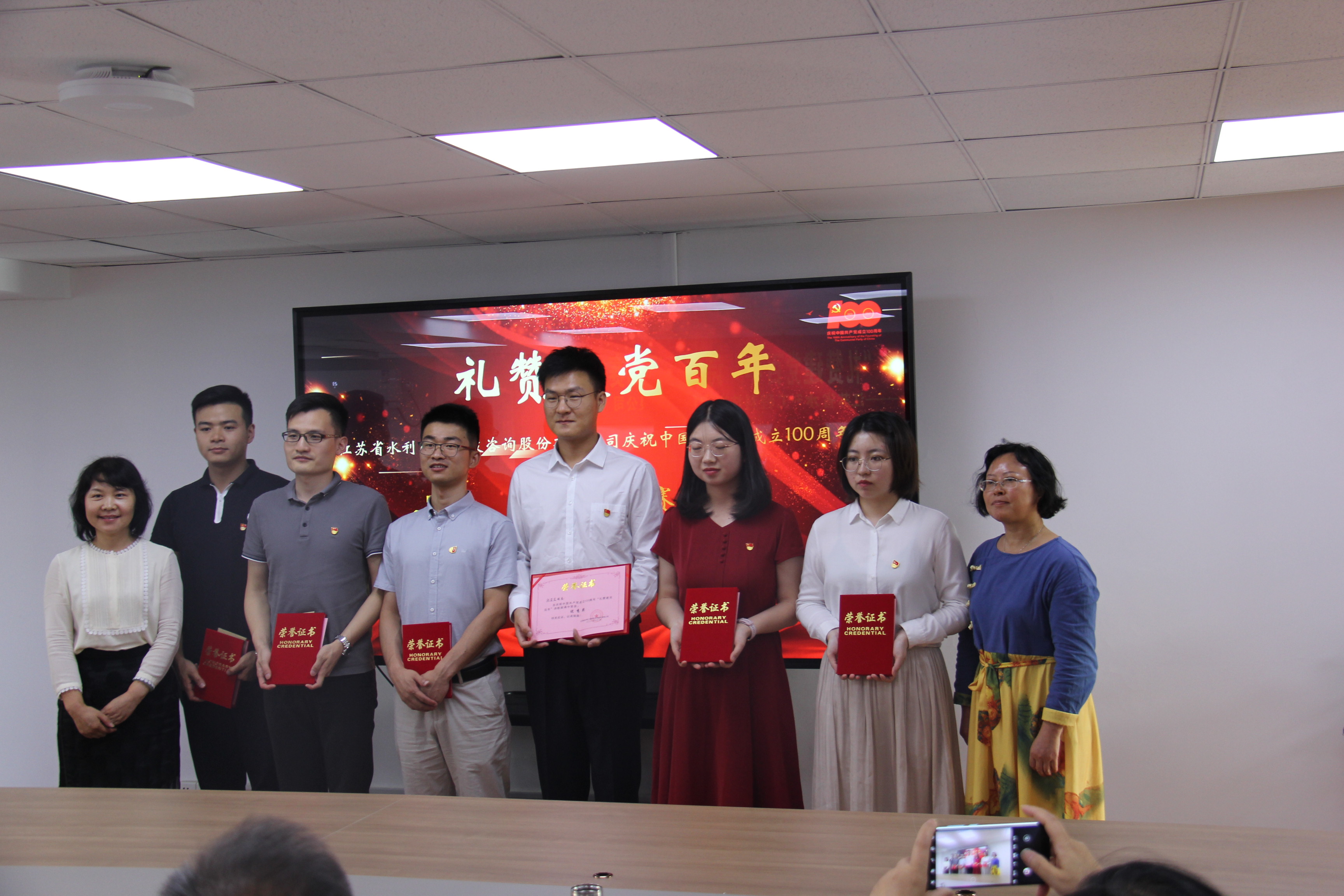 百年征程激蕩人心,百年艱辛蓽路藍縷,百年滄桑劈波斬浪,百年初心歷久彌堅。2021年7月1日,公司舉行慶祝中國共產黨成立100周年主題活動。 上午,公司黨支部組織經營層、中層管理人員、全體在職黨員及入黨積極分子在5樓會議室集中收看“慶祝中國共產黨成立100周年大會”電視直播。大家認真觀看了慶祝大會全過程,聆聽、學習了習近平總書記的建黨100周年獻言,回顧中國共產黨百年奮斗的光輝歷程,展望中華民族偉大復興的光明前景。 侖山水庫代建項目組在工地同步組織收看慶祝大會。