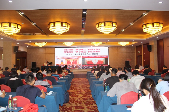 為了迎接黨的二十大勝利召開,7月29日上午,省水利咨詢公司黨支部組織召開主題黨日活動暨全體員工大會。以“深刻領悟‘兩個確立’的重大意義 自覺落實‘兩個確立’的實踐要求”,提升全體黨員群眾政治自覺,永遠跟黨走,筑牢奮進水利事業(yè)發(fā)展新征程的思想基礎。公司黨支部書記、董事長兼總經(jīng)理顏紅勤參加并主持會議。 會議在慷慨激昂的國歌聲中拉開了的序幕,全體黨員群眾滿懷崇高敬意和無比自豪的心情齊唱國歌。 特邀南京市委黨校郝繼明教授講授了“兩個確立”的決定性意義。郝教授從科學回答中國之問、世界之問、人民之問、時代之問;更好地推動構建人類命運共同體;更好地堅持和發(fā)展中國特色社會主義;更好地推動實現(xiàn)中華民族偉大復興中國夢的歷史進程等七個方面,為全體黨員群眾全面上了一次內涵豐富、條例清晰、分析透徹的主題黨課。 公司副總經(jīng)理翟高勇、任玉彬和全體黨員、群眾參加會議。