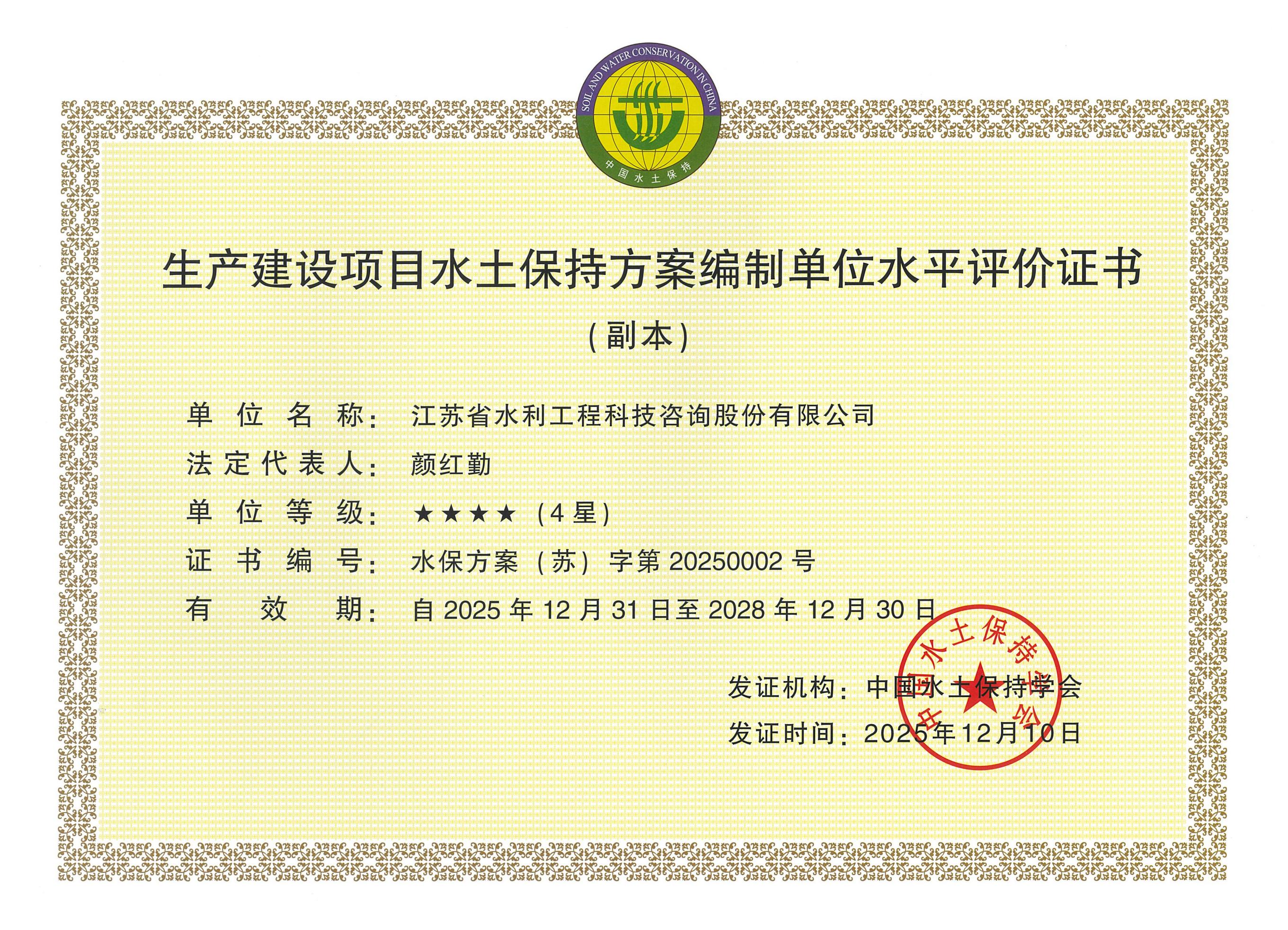 生產(chǎn)建設(shè)項(xiàng)目水土保持方案編制單位水平評價證書